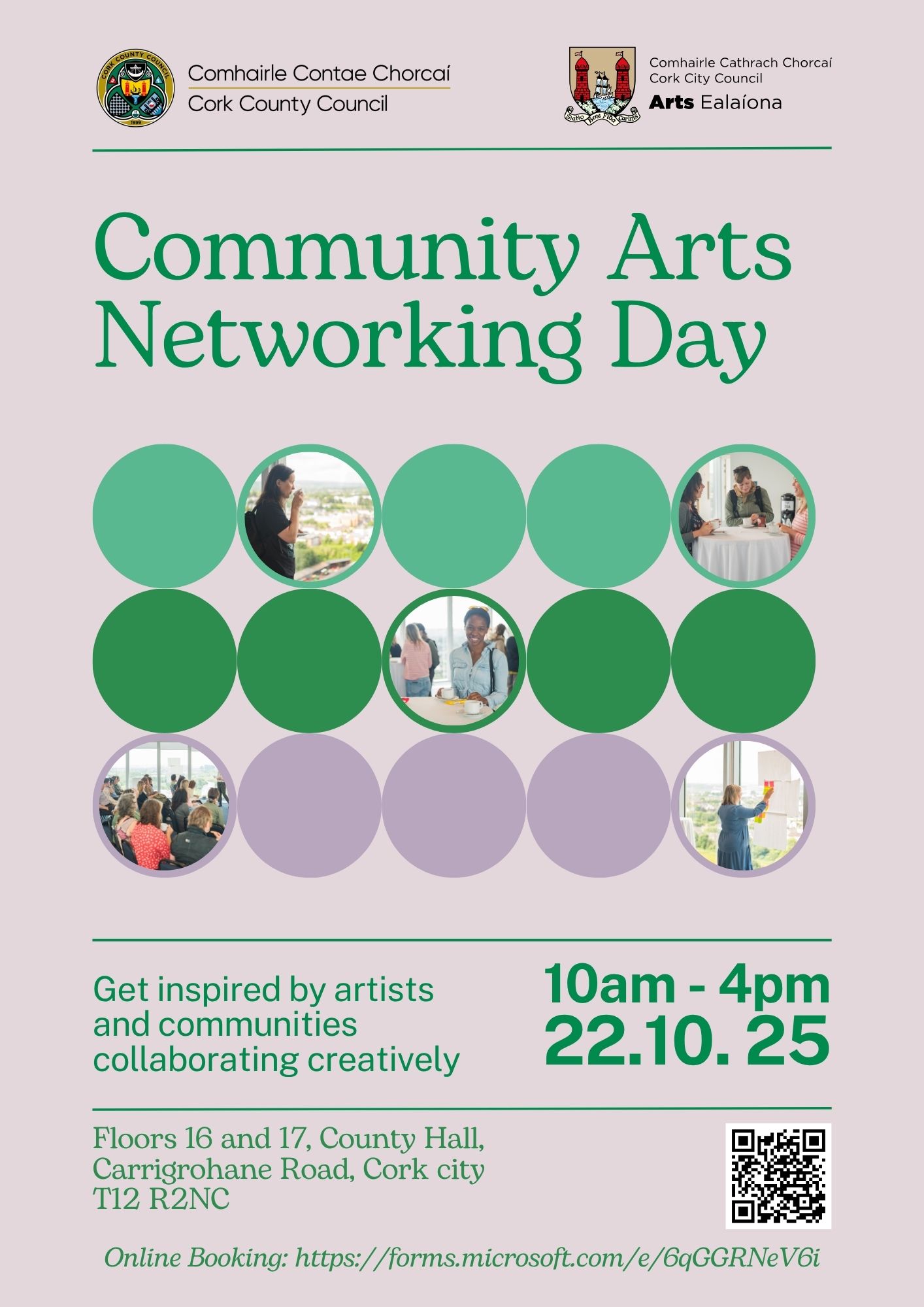 Cork County and City Council Arts Offices invite you to our first-ever Community Arts Networking Day. The event welcomes artists, community leaders, advocacy groups, educators, and representatives from the public and voluntary sectors across city and county for a lively day of exchange focused on socially engaged arts practice and collaborative creativity.