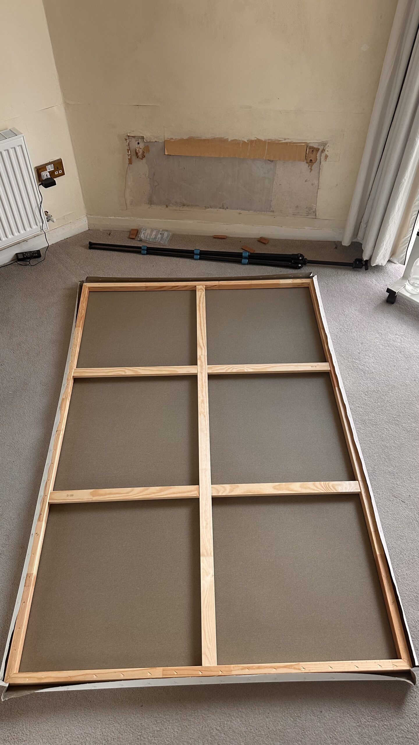 C.A.S. fine linen canvas + stretcher bars, 120×180 cm. Bought from Cork Art Supplies for €145, selling for €60. Canvas removed and bars taken apart, so it’s rolled up and easy to transport. Collection Donnybrook, Dublin.