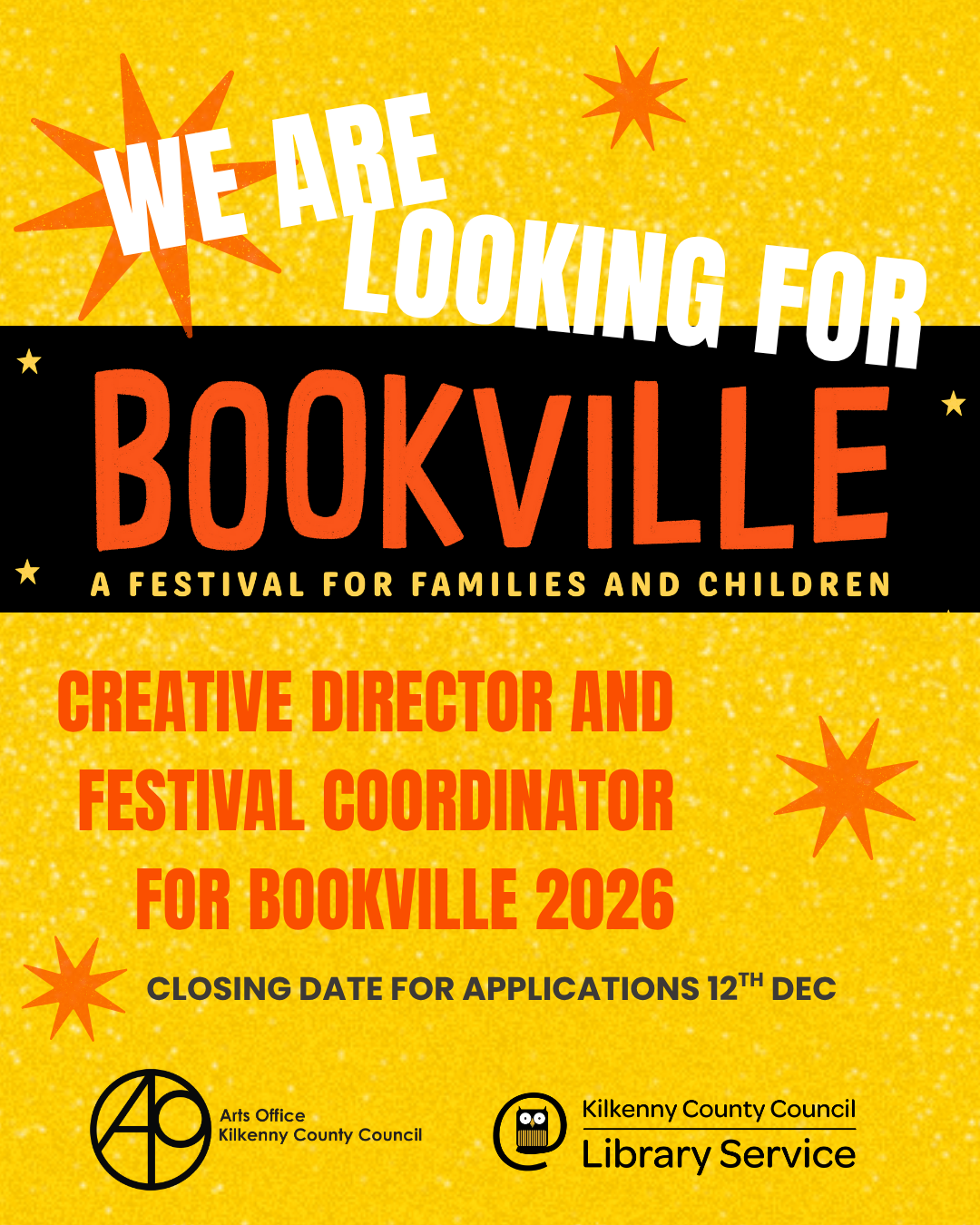 Bookville is a festival for families and children between the ages of 0 – 12 years managed by Kilkenny County Council Library Service and the Arts Office. This multi-disciplinary festival which has a strong emphasis on books, literature and writing takes place between October 1st-8th and is looking for a Creative Director and Festival Coordinator for 2026. Deadline for applications 12th December.