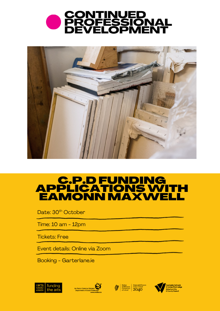 Free, but booking essential. Book here: https://garterlane.ie/events/cpd-funding-applications/