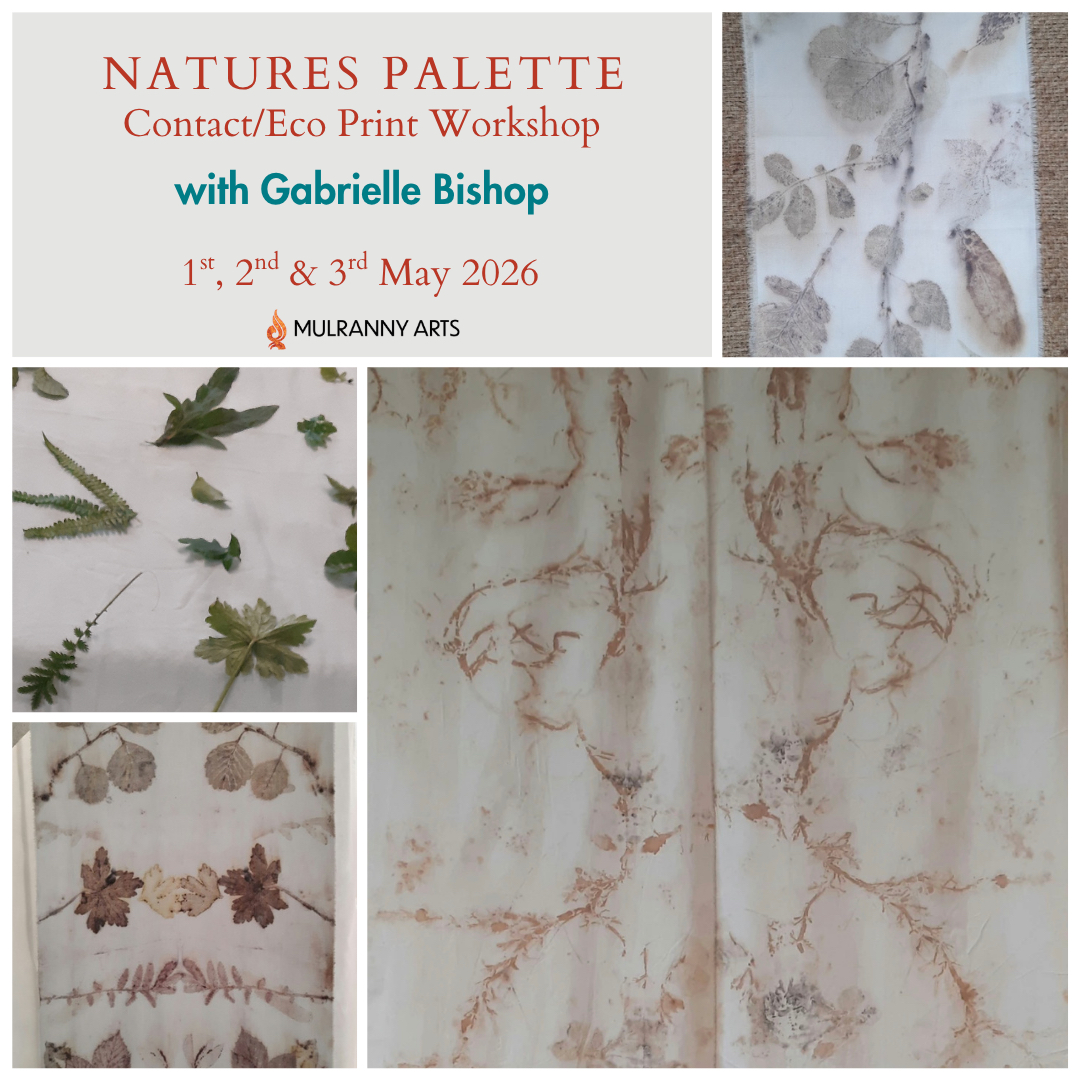 Join multimedia artist Gabrielle Bishop for a three-day, hands-on workshop exploring botanical contact printing on fabric and paper. Drawing inspiration from Mulranny’s beaches, woodlands and gardens, participants will forage plants, learn natural dye and printing techniques, and experiment with bundling, steaming and iron processes. The workshop covers plant selection, fabric preparation, mordants and finishing techniques. Participants will leave with unique textile pieces, botanical paper prints and detailed notes. No prior experience required; all materials provided.