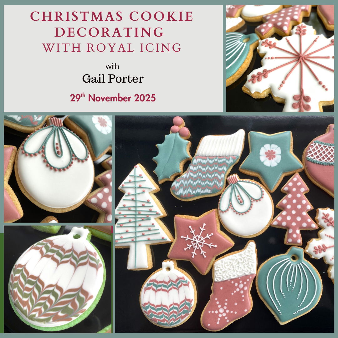 Master the art of royal-icing cookie decorating with expert baker Gail Porter and unleash your creativity this festive season in our one-day, hands-on workshop. Royal icing is a classic decorating staple offering a smooth and durable finish.   The real magic lies in getting the consistencies just right, and Gail will share all her tips and tricks to help you understand getting the basics of this right before teaching you several decorating techniques.