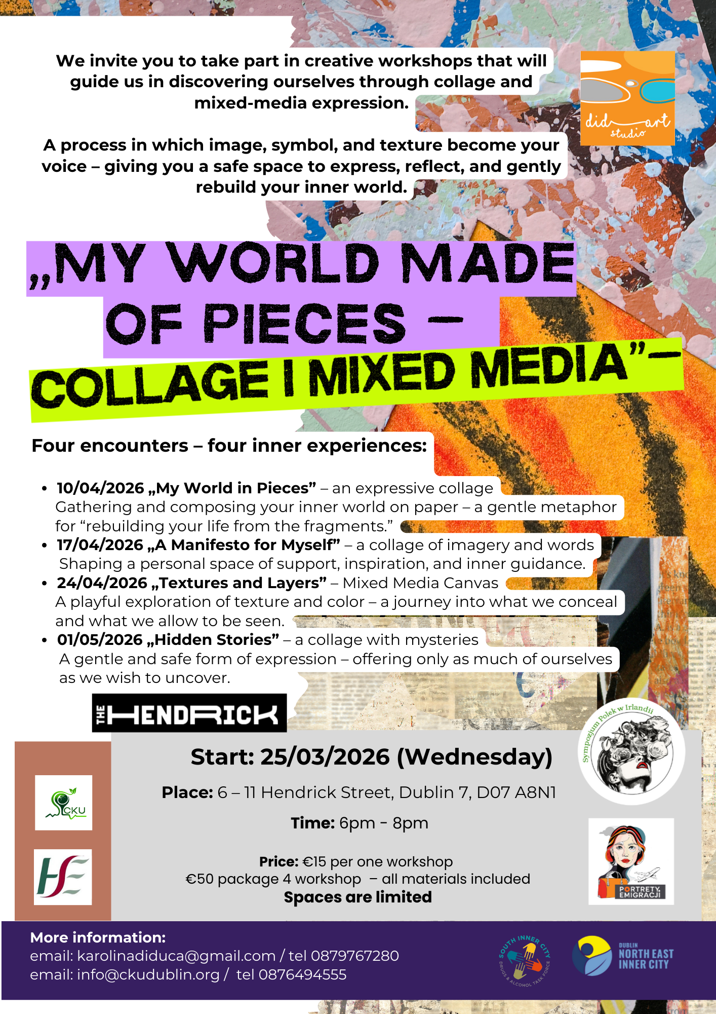 We invite you to take part in creative workshops that will guide us in discovering ourselves through collage and mixed-media expression. A process in which image, symbol, and texture become your voice – giving you a safe space to express, reflect, and gently rebuild your inner world.