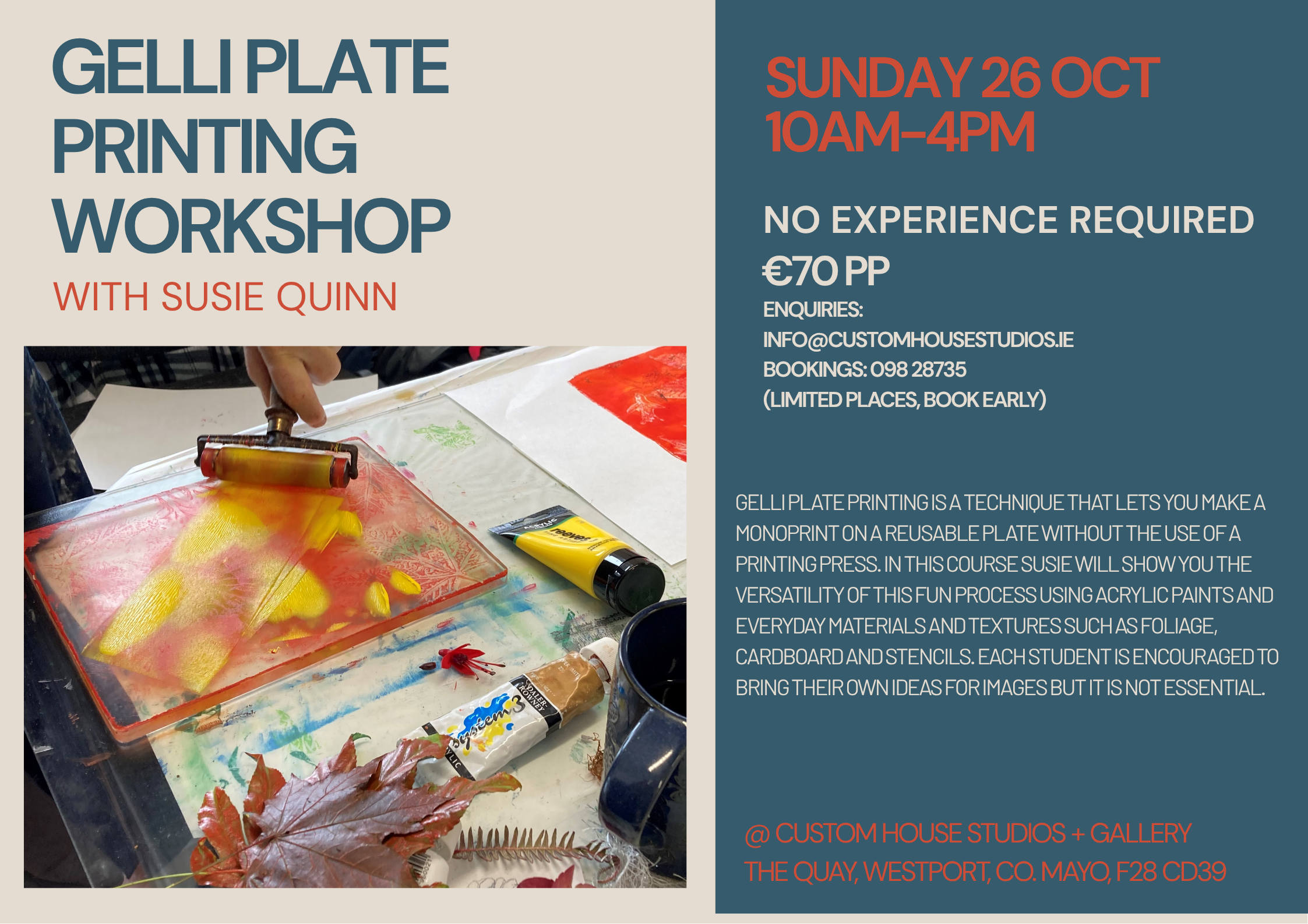 Join us at the Custom House Studios + Gallery for a Gelli Plate printing workshop with Susie Quinn.