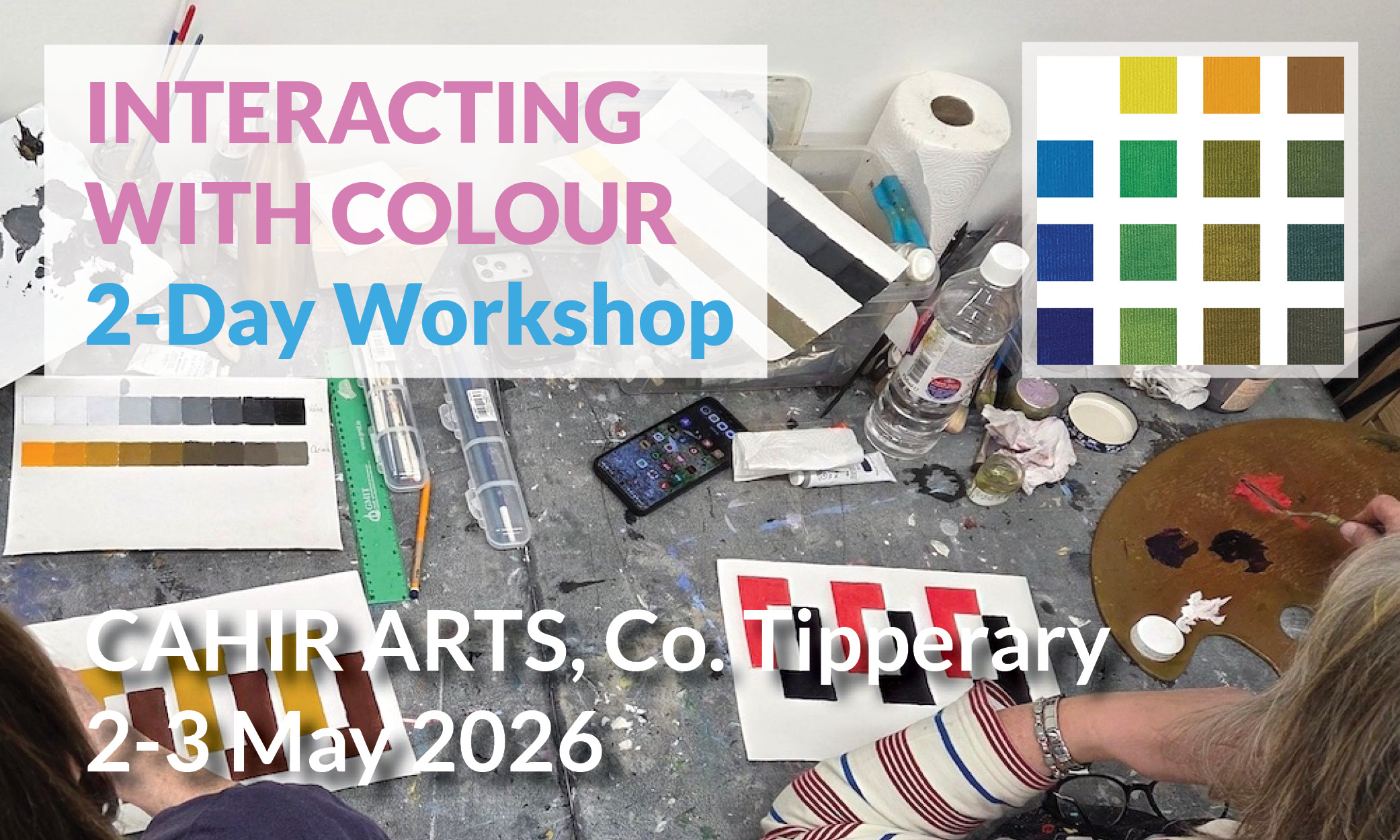 This 2-day studio workshop at Cahir Arts puts colour practice before theory, and prioritises your subjective experience of colour over prescribed ‘rules’, in order to use colour in a more personal and effective way. Following the teachings of Josef Albers, you will learn about the subjective and elusive qualities of colour through fascinating guided experiments and studies. Conventional colour theory will also be explained and we will identify the shortcomings of traditional colour systems.