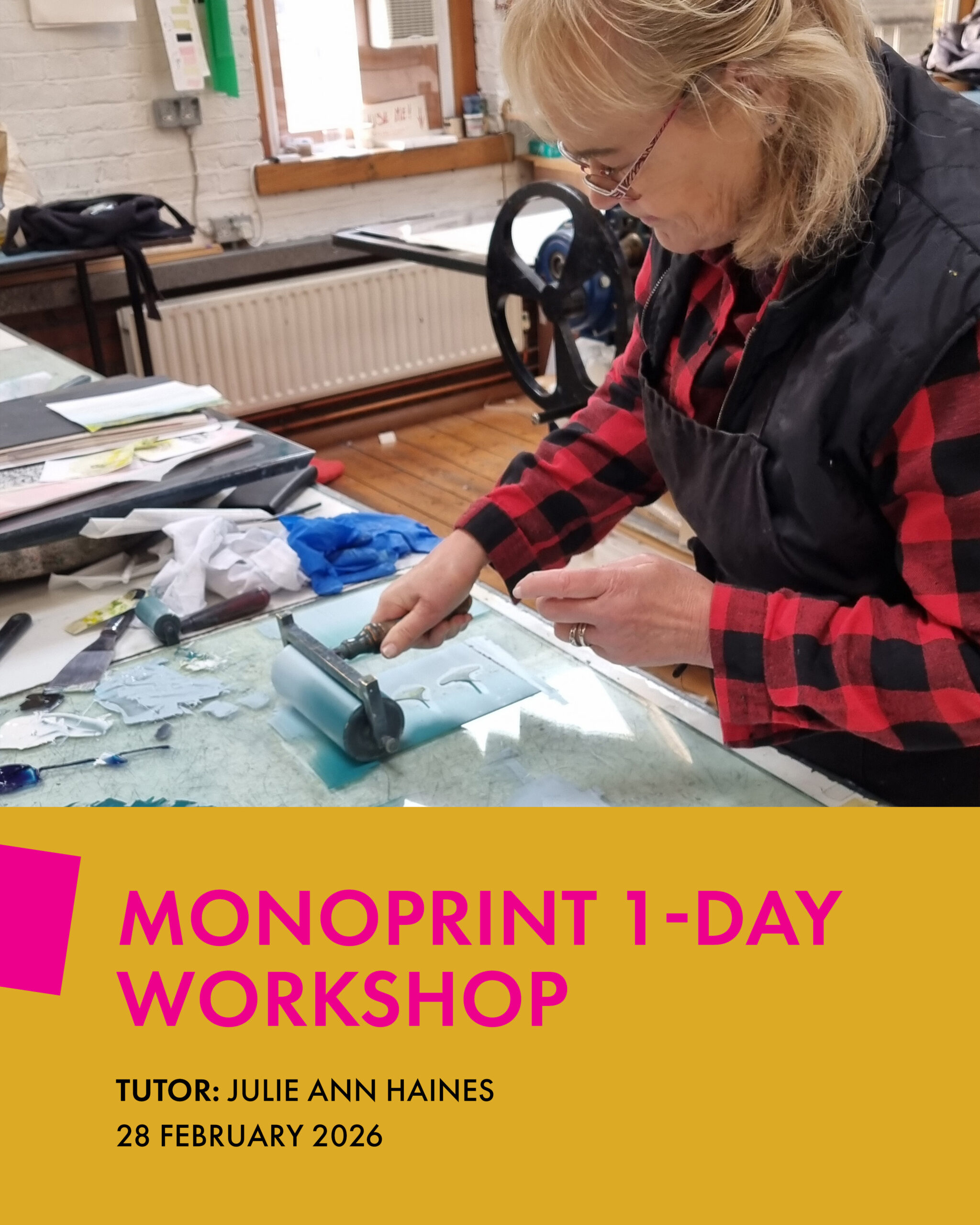 A beginner-friendly introduction to monoprinting. Work directly on plates using rollers, brushes and mark-making tools to produce expressive, one-off prints using a printing press.
