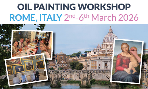 Enjoy a full week’s painting holiday in the heart of Rome, Italy, next March! This 5-day workshop is a wonderful opportunity for artists to immerse themselves in the art, culture and heritage of the eternal city. Follow in the footsteps of the Italian Renaissance masters, learning their painting principles and techniques, absorb the artistic and cultural surroundings, and finally create your own contemporary masterpiece!