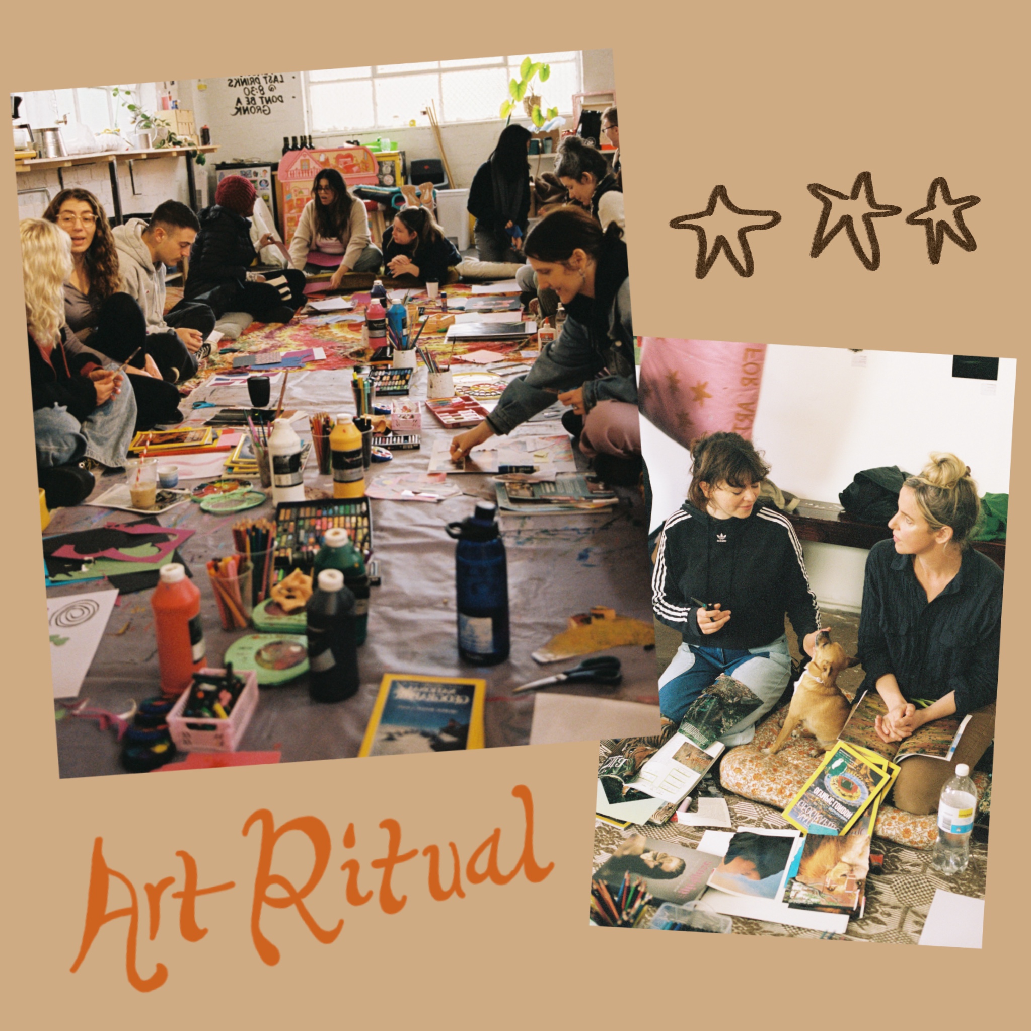 The Art Ritual invites you to express, explore, experiment, and engage. Each session offers a new prompt to encourage self-reflection through art-making. We’re not about aesthetic artworks; instead we encourage you to find what feels right. This supportive space is created by everyone who joins, and it’s really lovely to share, listen and connect with others.