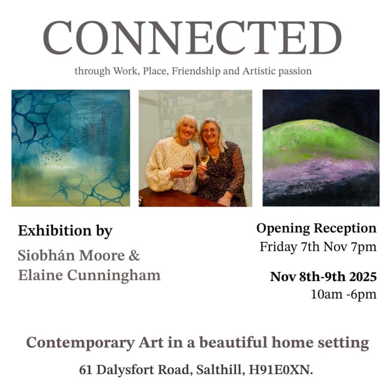 Two Galway-based artists, Siobhán Moore and Elaine Cunningham, invite audiences to experience Connected, an intimate exhibition celebrating shared journeys, friendship, and creative expression.