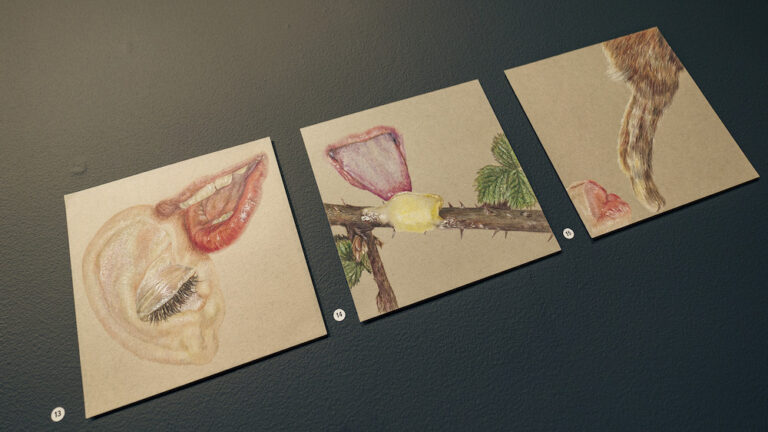 The screenprints, drawings, and sculptures in this exhibition are part of a body of work created by Emily McGardle over the past three years. This work reflects the strong visual imagery present in seanfhocail while highlighting the connection between people, nature, and the Irish language.