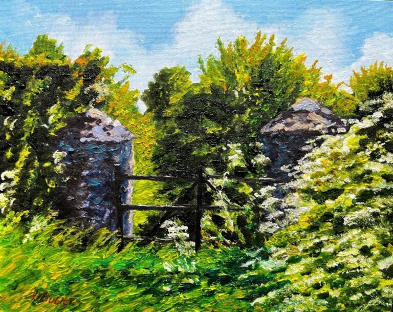 While Laura Butler and Audrey Kyle have very different artistic styles and use different mediums, they share a vision in the sense of being preoccupied with a world beyond the present moment. Often, they are drawn to depicting scenes in the same places but produce their own unique interpretations. Audrey explores through a deep connection with the natural world, a strong sense of the mythical, mystical and folklore. Laura’s pursuit in her landscape paintings is to honour the spirit of the lives of people, and the traces their presence leaves on the landscape.