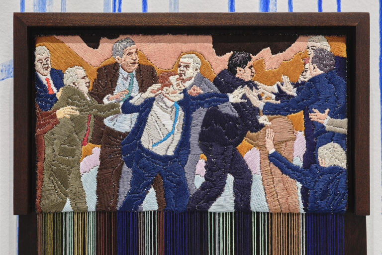 Siren is an expansive exhibition that incorporates ceramic sculpture, textile sculpture, tapestry and mosaic sculpture. Greco-Roman inspired, surrealist mosaic sculpture take centre stage framed by major new monumental tapestry work.