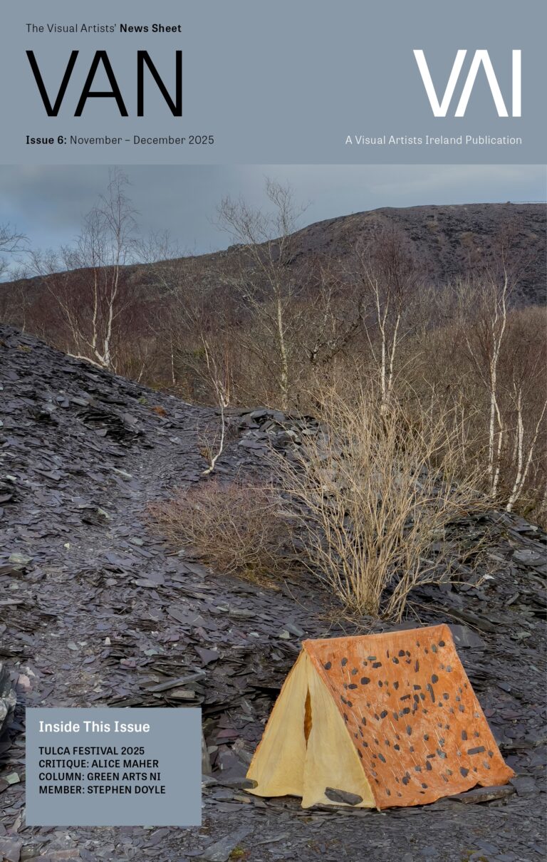 This issue also includes reports on recent VAI events and activities: Brian Kielt discusses VAI’s Connected Horizons programme; while Joanne Laws and Thomas Pool report on Get Together 2025, including the networking event at TU Dublin on 8 September, and the online conference, New Institutional Approaches to Curating, happening on 16 September.